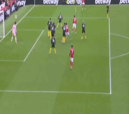 第48分鐘,吉布斯-懷特頭球沖頂破門,1比1!第50分鐘,伊戈爾-熱蘇斯頭球擺渡,薩沃納搶在達洛特之前將球捅射破門,2比0!