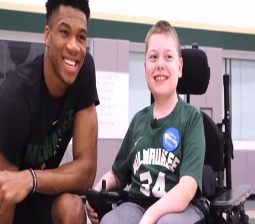 雄鹿官方邀請(qǐng)了小男孩到雄鹿訓(xùn)練館,字母哥也是為小男孩送上了自己的簽名球衣,隨后還召集了隊(duì)友們聚在一起讓小男孩喊口號(hào)。